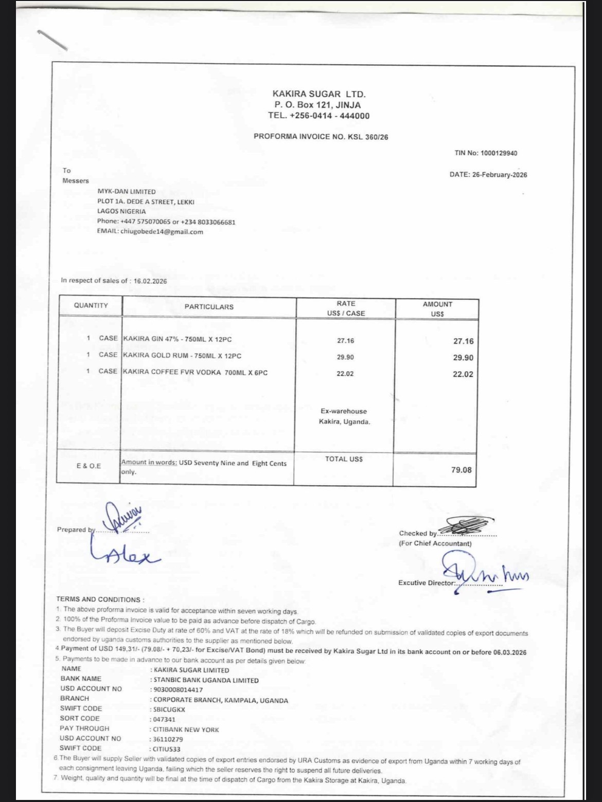 Alcoholic beverages (glass bottles) – 46kg – Uganda to Lagos